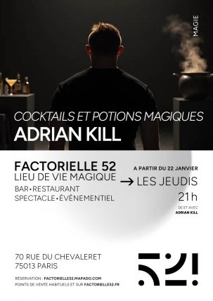 Il est composé d’un bar magique, d’un restaurant et d’une salle de spectacle. Le lieu est conçu pour abriter des spectacles de magie tout au long de votre visite : un·e magicien·ne vous accueille au bar et à table pendant la soirée, et chaque soir, le sous-sol abrite un spectacle de magie. Plongez dans un monde d’illusions et de mystères dans notre lieu atypique situé dans le 13e arrondissement de Paris. Nos spectacles de magie mêlent performance artistique et immersion totale, pour un moment hors du temps. En solo, entre amis ou pour un événement spécial, laissez-vous surprendre.